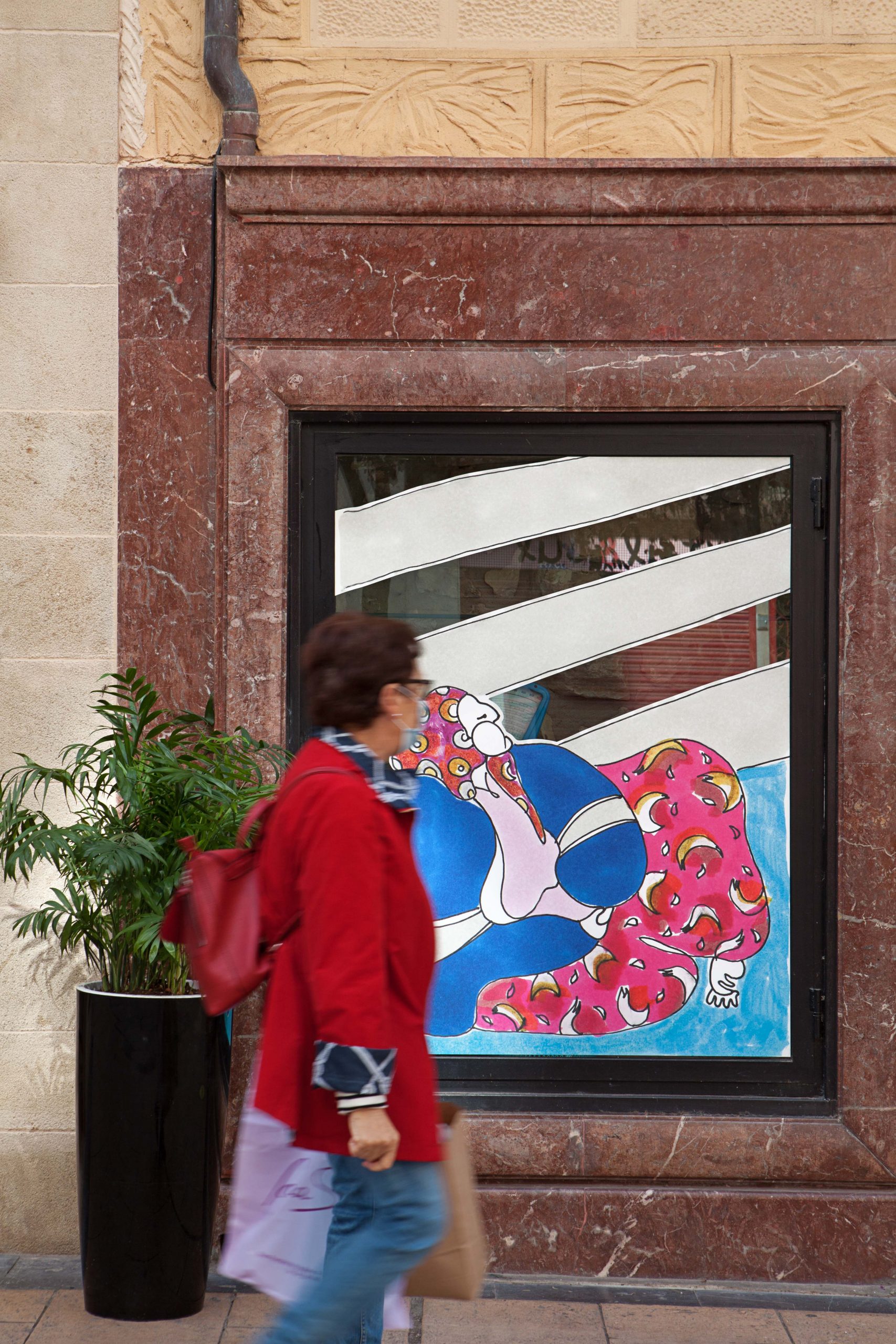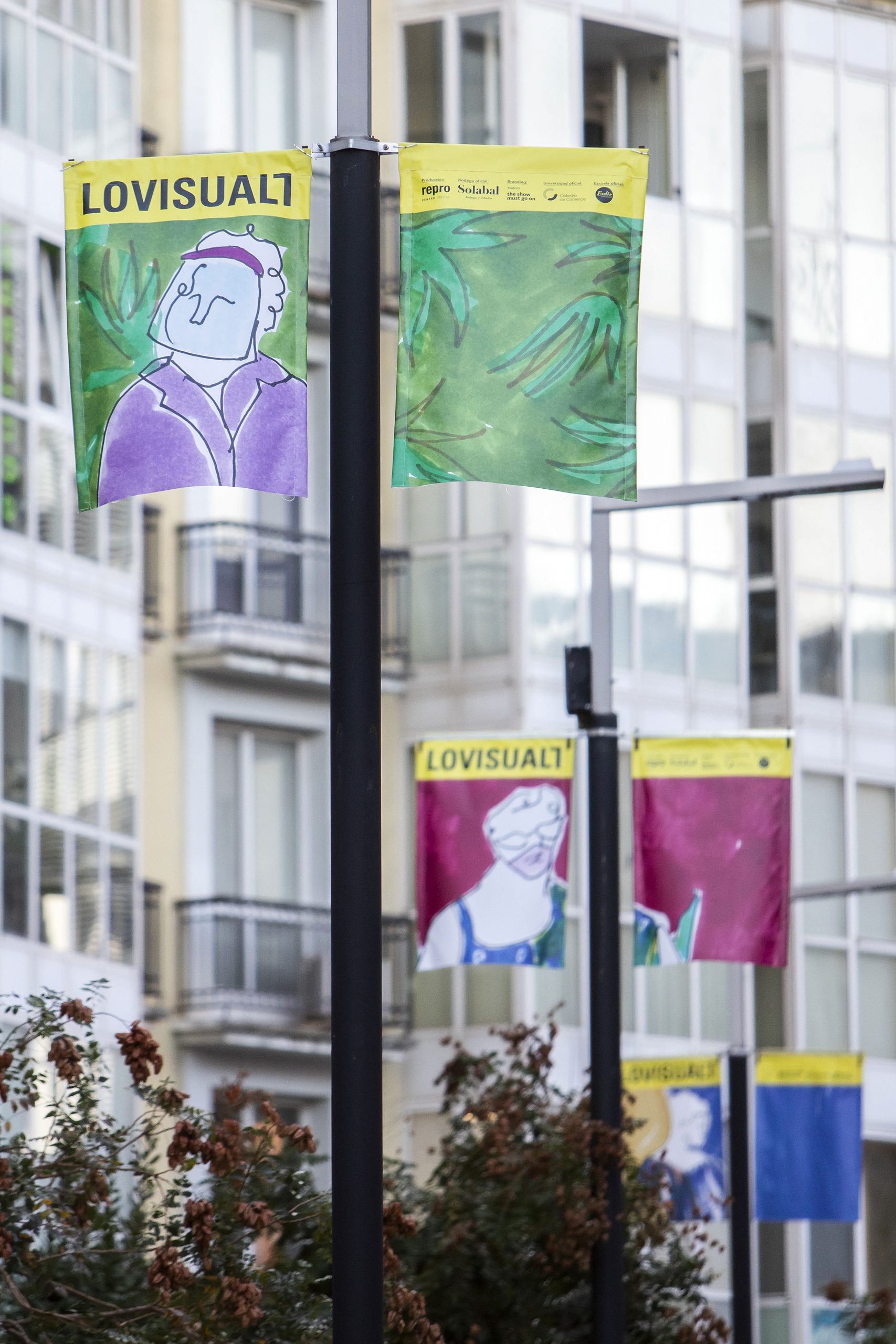 Lovisual20 seeks to respond to the current moment and therefore proposes an evolution of its format to contribute in a more firm way, if possible, to its main idea: the city, as a whole, is open. A joint image, through the work of designer Andrea Santamarina, that makes Logroño, its stores and bars visible as open windows that contribute through art to generating a collective, supportive and optimistic imagery. Balconies and windows that are drawn to build a community bond with all those anonymous characters (mainly people -and women- of middle and old age) who have contributed to making the city.