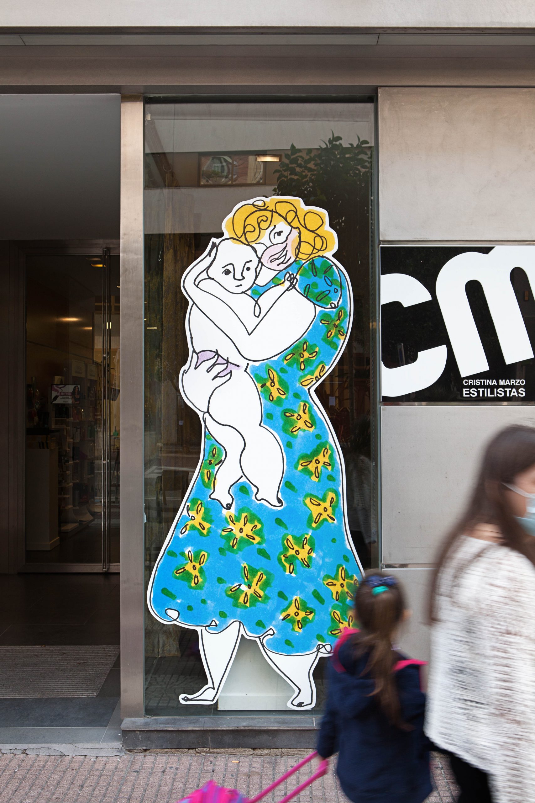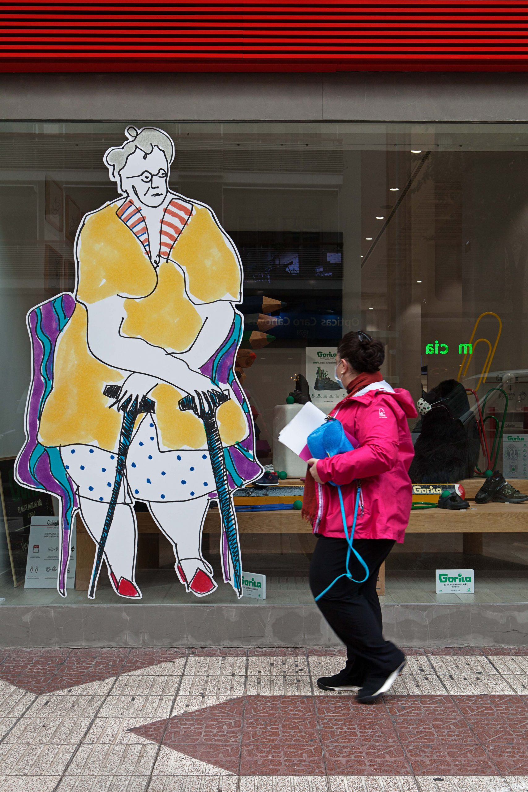 A serie of around 80 Large Scale drawings drawings are installed in the windows display of the city of Logroño (La Rioja, Spain), configuring a continuous urban storyboard, which expands through flags, bus stops and different spaces to contaminate the whole city.
