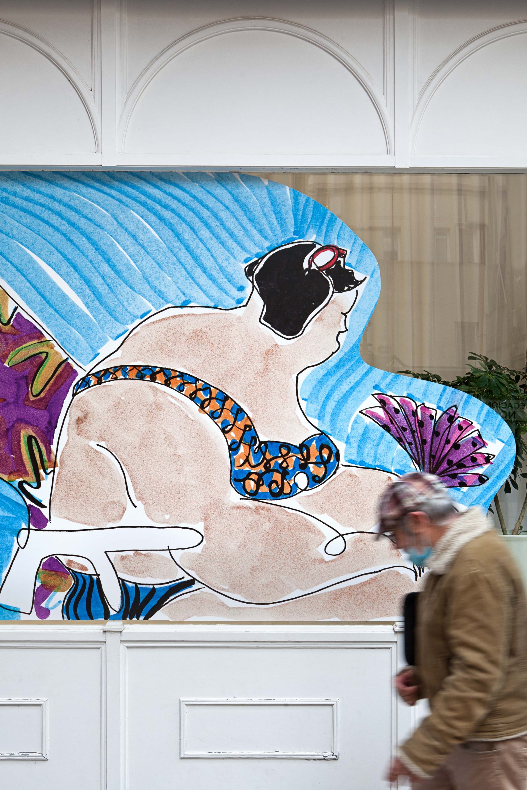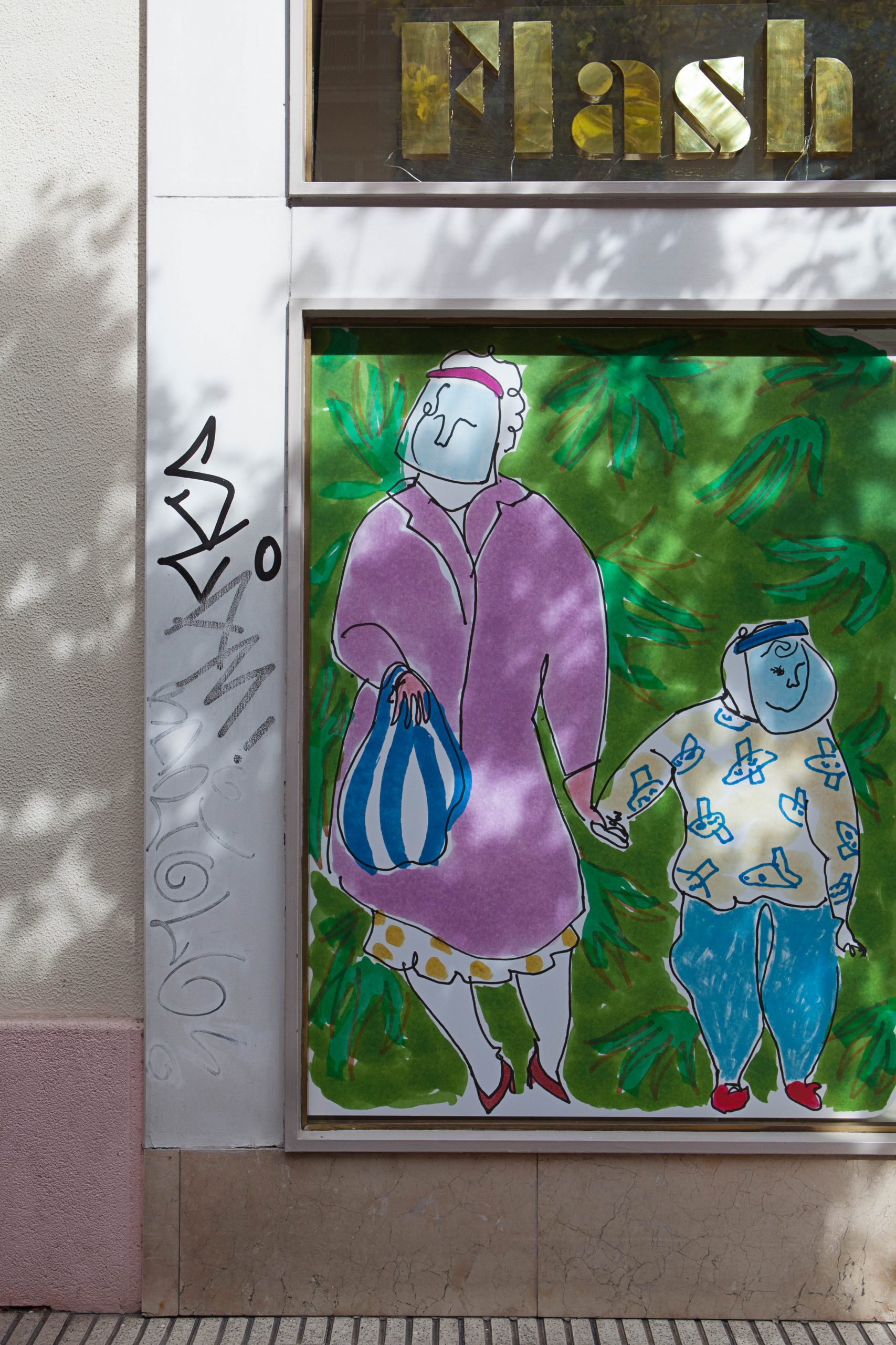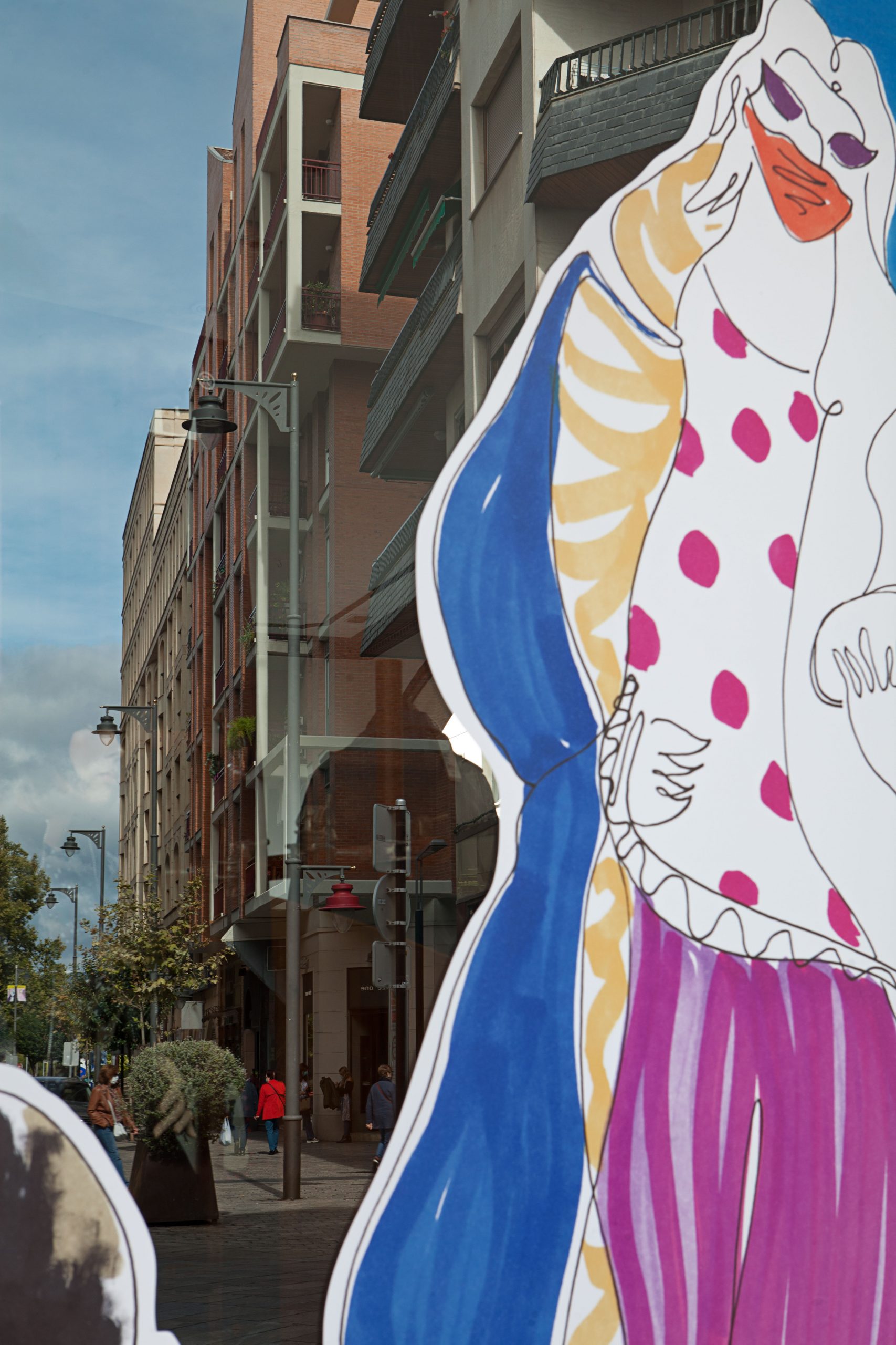A serie of around 80 Large Scale drawings drawings are installed in the windows display of the city of Logroño (La Rioja, Spain), configuring a continuous urban storyboard, which expands through flags, bus stops and different spaces to contaminate the whole city.